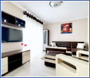 UMEBLOWANIE / WYPOSAŻENIE: zabudowany aneks kuchenny z wyposażeniem (zlew jednokomorowy, lodówka podblatowa, okap, płyta elektryczna dwustanowiskowa, kuchenka mikrofalowa), hokery, w pokoju rozkładany narożnik, rozkładany fotel, ława, witryna, szafa, szafka po telewizor, telewizor, wieszak i szafka na buty, w garderobie półki i wieszaki, w łazience pralka.