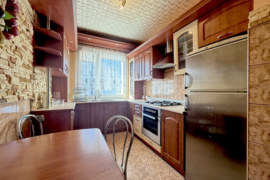 UMEBLOWANIE / WYPOSAŻENIE: w dużym pokoju narożnik, ława, biurko, krzesła, meblościanka, pokoje częściowo umeblowane, w kuchni zabudowa z wyposażeniem: zlew jednokomorowy, kuchenka , płyta gazowa, okap, lodówka, w łazience pralka, w przedpokoju dwie obszerne szafy.