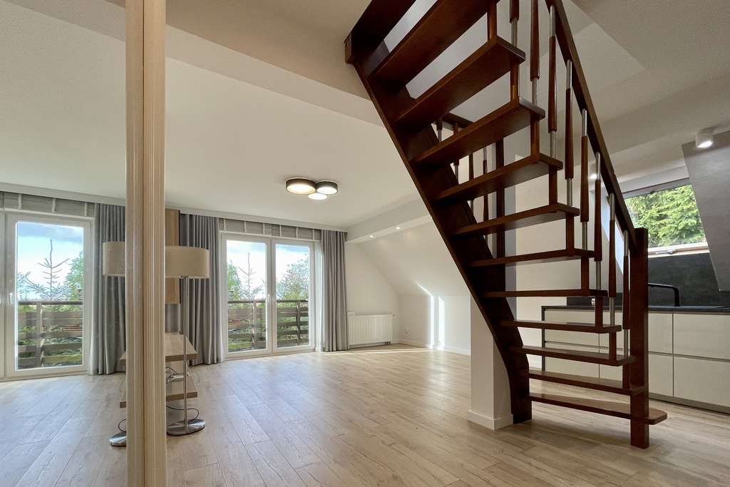 Słoneczne, przestronne mieszkanie dwupoziomowe w Zieleniewie, 5 minut od centrum Kołobrzegu. Zlokalizowane na kameralnym osiedlu wśród zieleni, z dala od zgiełku. Usytuowane na 1 piętrze i poddaszu. Składające z 4 pokoi, aneksu kuchennego, 2 łazienek.